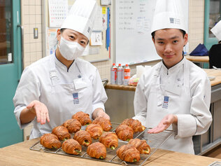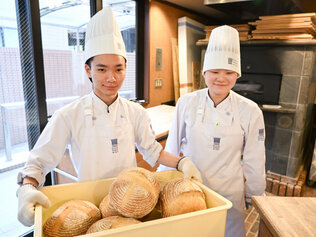 学びの環境も、市場のトレンドを見据え「どこの現場に行っても対応できる」充実を図り、製菓学校では随一の本格的石窯をはじめ、在学中にさまざまな設備や道具を使いこなせる環境が整っています。 |