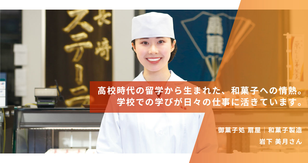 高校生のときに海外へ留学し、色んな国の人たちがいる環境で「日本には桜があるから羨ましいよね」という会話に触れ、「日本の四季」や「桜」など日本文化への関心や高まりを実感しました。それがきっかけになって、日本伝統の表現ができる和菓子に魅了されていきました。この経験が現在の仕事や海外で和菓子文化を広めたいという目標につながっています。
