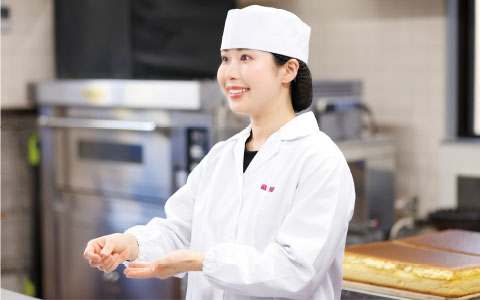 和菓子職人として働く父の姿を見て、自然と和菓子づくりに憧れを抱きました。なので東京製菓学校に入学すると同時に、実家の扇屋で働きました。父から任されたカステラやどら焼きづくり、飾り付けなどを通じて、職人としての基礎も身近で感じました。東京製菓学校では、和菓子づくりを基礎から応用まで幅広く学ぶことができ、特に上生菓子をつくるうえでの細やかな技術は、今でも日々活かすことができています。「ヘラを動かす回数が少ないほど上手に見える」という先生からのアドバイスは常に意識するようにしています。SNSなども駆使して、和菓子の魅力をもっと広めていきたいです。