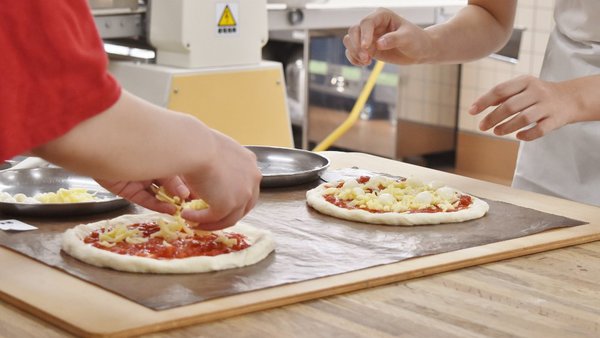 ピッツァ生地を遠心力をつかって薄く丸くのばす作業はちょっと難しかったかもしれませんが、みなさん楽しそうにつくってくれたので何よりです。