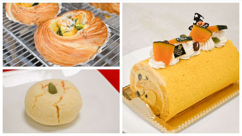 今回はかぼちゃのロールケーキや進化系ハイブリッドペストリーかぼちゃのクロフィン、かぼちゃ餡を包んで仕上げる黄味時雨など、洋菓子もパンも和菓子もすべて、間近に迫ったハロウィンにぴったりなメニューをご用意しました。