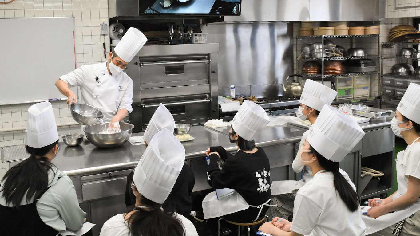 日頃いつも学生たちを指導している本校専任の先生はもちろん、昼間部 和菓子本科2年生の学生もアシスタントとして参加して、これまで身につけてきた知識やテクニックを随所に披露してくれました。1年間本校で学んできた学生たちの成長ぶりにも注目してみてください!