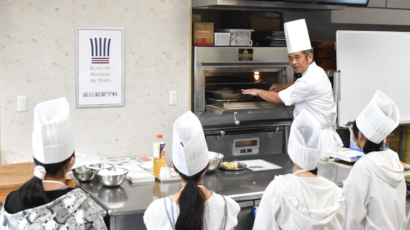 そして今回も、アシスタントを務めてくれた先輩学生たちによる、上生菓子のデモンストレーションを実施しました。入学して1年半経験を積んできた学生たちが、どれくらいの技術を身につけられているのか、気になるところですよね。