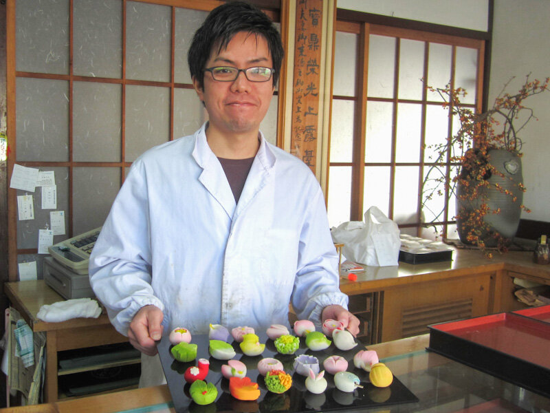 昔ながらの伝統的な味を守りながらも、新たなチャレンジにも積極的なこちらの7代目が、本校卒業生の 若狭 誠一朗 さん(第1部和菓子本科2004年卒)です。