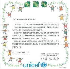販売等の売り上げの一部を財団法人 日本ユニセフ協会に