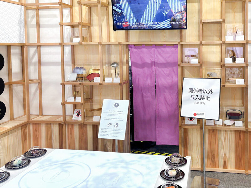 全国和菓子協会より依頼を受け、本校和菓子科教師陣6名が制作した登録無形文化財「菓銘をもつ生菓子(煉切・こなし)」16種類およびブース内壁面パネル製品25種類、細工道具類の展示などに協力させていただいています。
