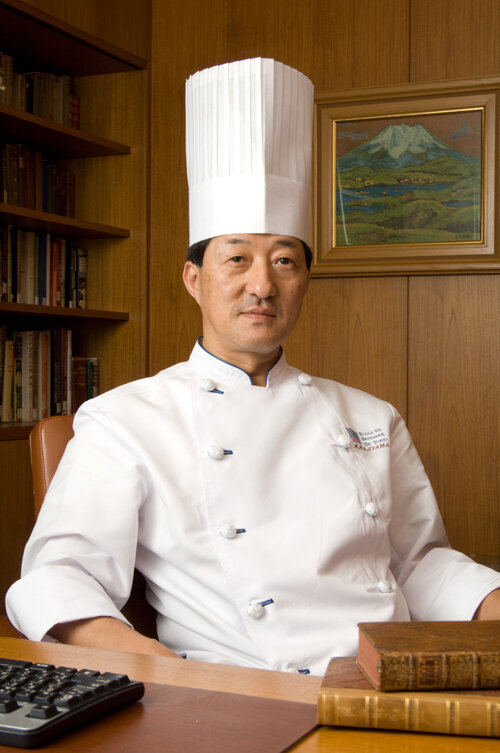 梶山校長は本校卒業後「阿佐ヶ谷・鉢の木」に就職し技術の研鑽に励み、次店となる「亀戸・満月」に工場長として勤務、その後、母校である本校にて教壇に立ち、菓子づくりを通して人を育てるべき "菓子は人なり"をモットーに熱く指導にあたってこれらました。現在は校長として学校運営全般に携わる一方、2005年・イタリア・ナポリを始めとして世界に向けて和菓子の啓蒙活動を始め、毎年諸外国にて和菓子の素晴らしさを世界に発信している。またフランスを中心とした和菓子講習会やワークショップも毎年のように開催され、和菓子業界では日本菓子協会・会長、2019年度より全国菓子研究団体連合会 会長に就任されています。