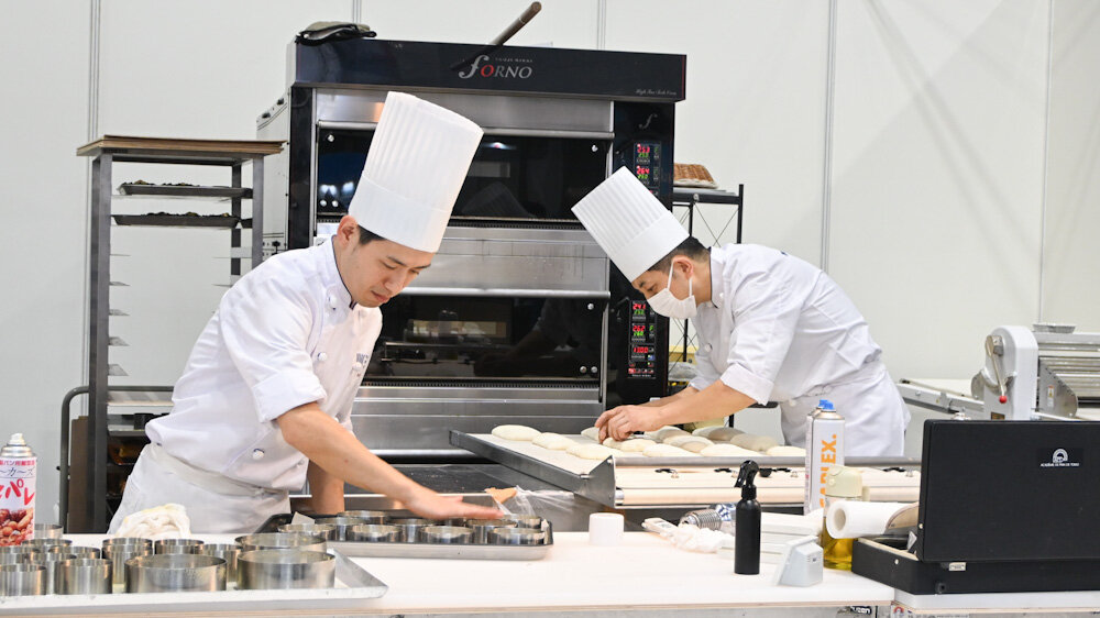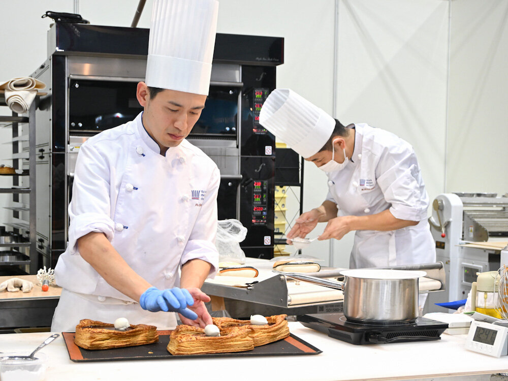 この大会で優勝したチームだけが、2027年にイタリア・リミニで開催される世界大会への切符を手にすることができます。この厳しい選考会に参加したのは、パン科 石川 光治 先生(右側)と洋菓子科 岡藤 光輝 先生(左側)のチーム東京製菓学校です!