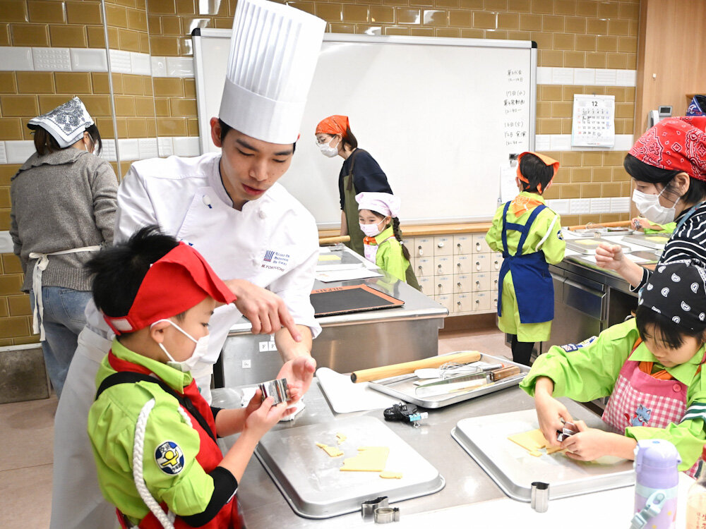 先週末の12/13(土)に戸塚交通少年団のみなさんにお越しいただき、鈴やブーツなどクリスマスアイテムをかたどったクッキーとロールケーキをつくってもらいました。