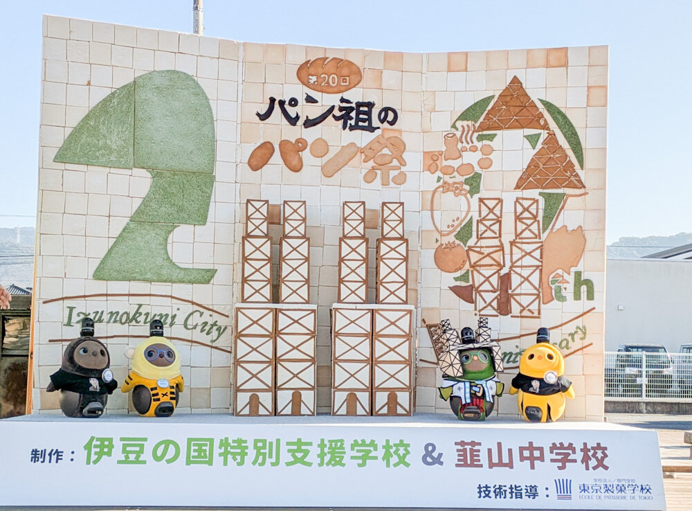 大勢の観客が詰めかけた中で除幕式が行われた巨大パンオブジェは、本校パン科が伊豆の国特別支援学校と韮山中学校の生徒さんたちとともに制作・監修させていただきました!
