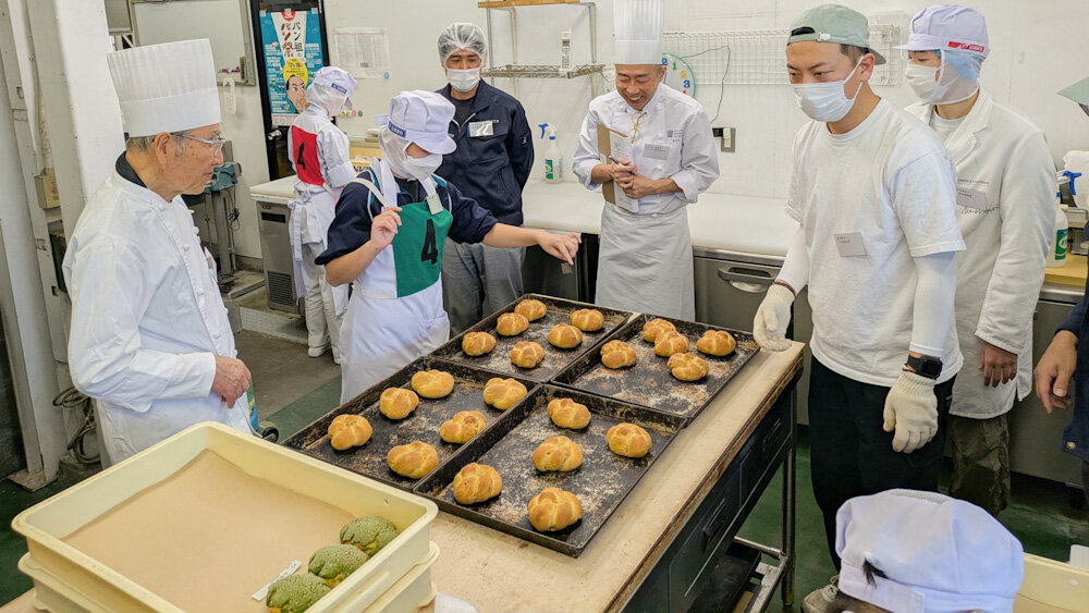 地元伊豆の国市にて本格的なドイツパンが人気の ベケライ ダンケ 工場内で行われる初日の実技審査は、すべての工程をその場で制限時間内に行なわなくてはならないとても過酷なもの。普段高校で使用している設備とはまったく異なるプロ用のミキサーやオーブンに少し戸惑いながらも、高校生たちの創意工夫や思いの詰まったパンが次々と誕生していました。