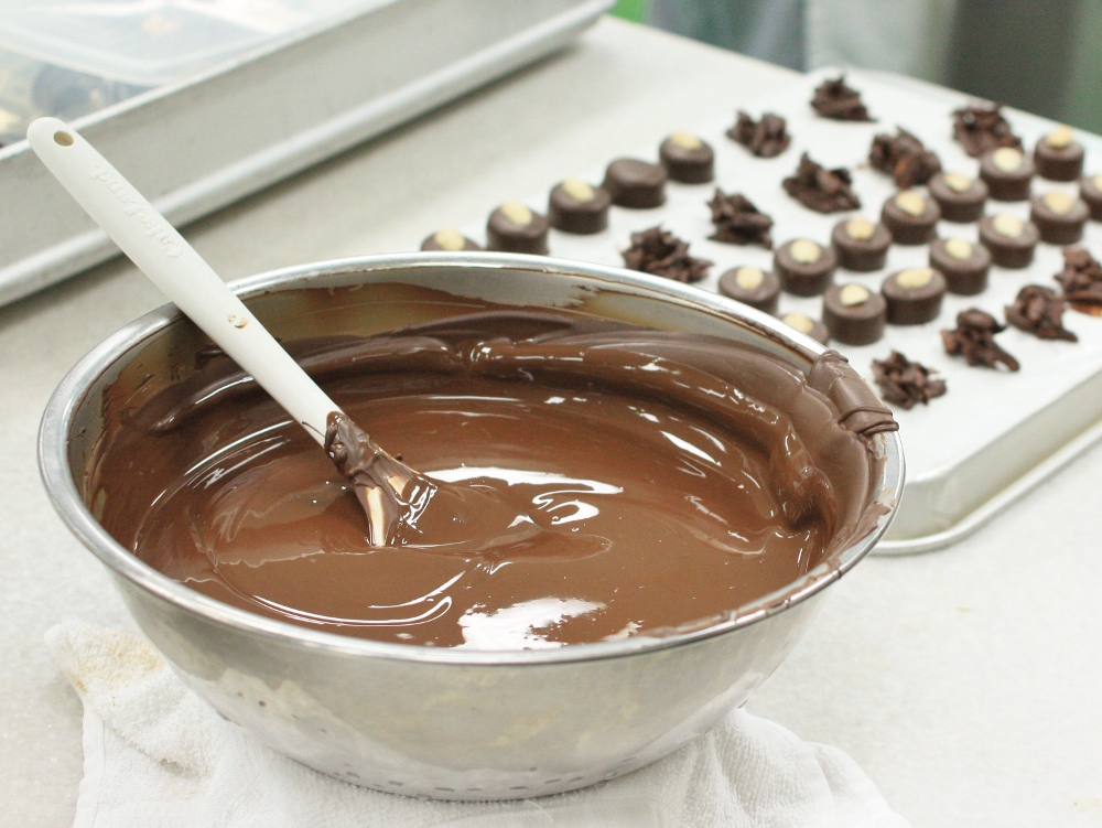 テンパリング作業はもちろん、センターに使用するプラリネやローストアーモンドなども、ちゃんと実習の中でつくっていくんですよ。