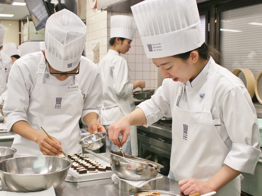 そして、洋菓子本科2年生は休み前から引き続いての「ボンボン・ショコラ」の実習です。