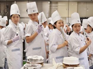 洋菓子科1年生では、デコレーションに欠かすことのできない、ナッペやパイピングなどの基本技術の修得に多くの時間を設定しています。