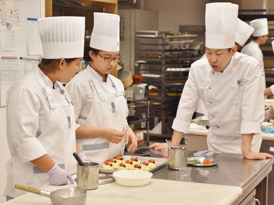 洋菓子本科2年生では、学生たちが自ら考えて、つくりたいお菓子を生み出す「創作研究」の授業を行なっています。