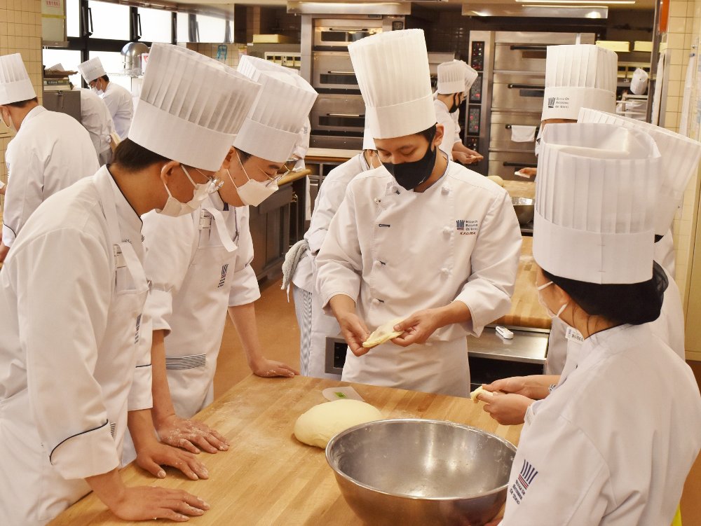 パン本科1年生では、「食パン」の生地を手で捏ねるところから始めます。