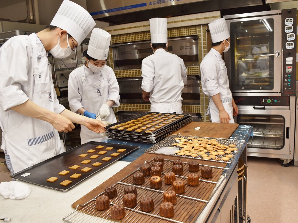 先日の夜間部洋菓子専科2年生では、さまざまな種類の焼き菓子に取り組んでいました。