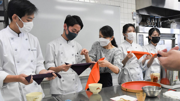 実際にお茶の席でお菓子がどのように用いられるのかを知っておくことは、とっても大切なことです。日本の生活文化に根ざした伝統を再確認し、教養とともにその背景にある「心」も学んでいくことで、本物の和菓子職人になっていってください。