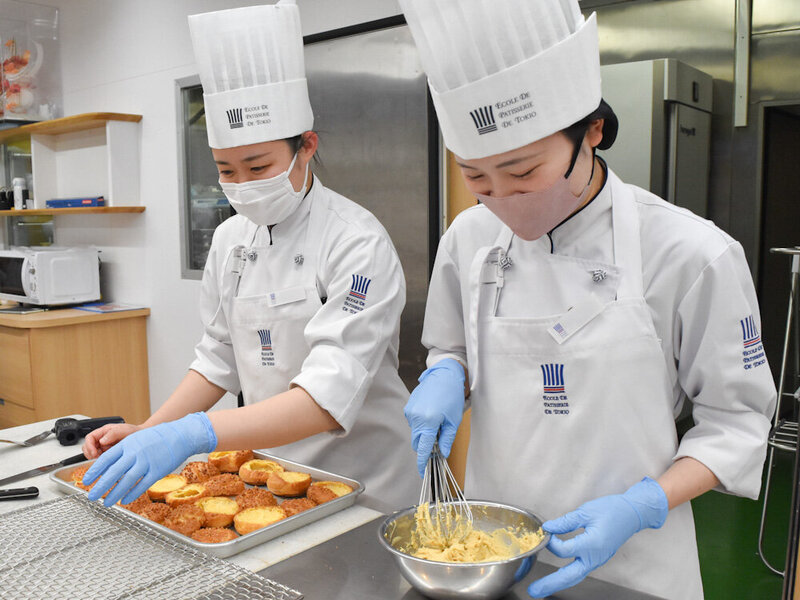 昼間部 洋菓子本科2年生の実習で取り組んでいたのは、和の要素を取り入れながらも本格的な味わいを楽しめる和洋折衷なパティスリーの数々です。