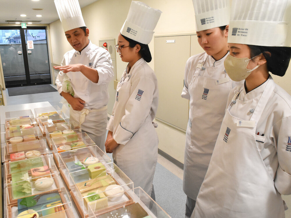 出来上がった作品は業界内でさまざまな経験を持つ先生や、まわりのみんなにも見てもらって、次により良いものをつくっていけるようにしていきます。自分たちでテーマを決めてデザインを考えていることもあり、それぞれ個性や性格がお菓子に表れていました。