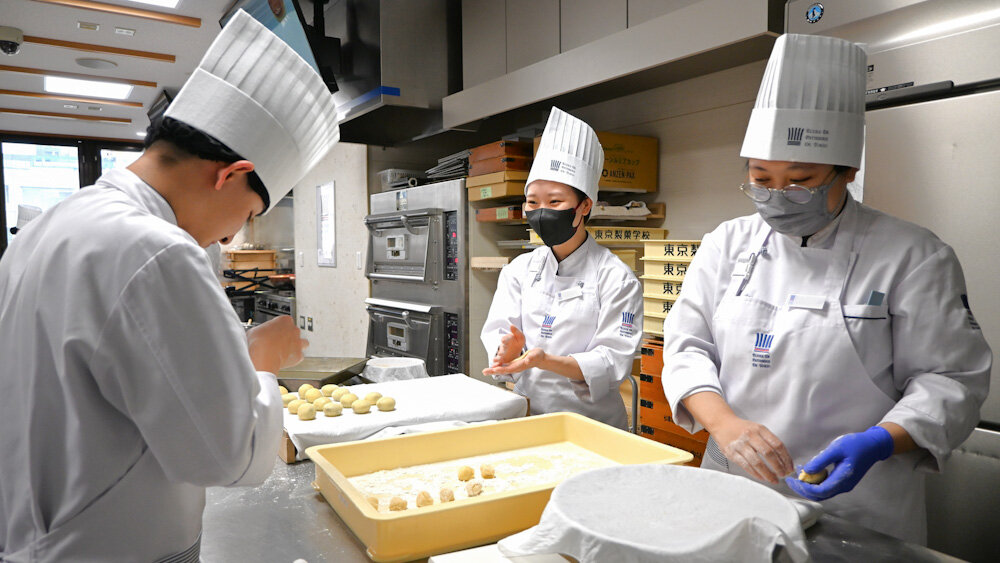 今日から昼間部の授業も再開されました!昼間部 和菓子本科1年生でつくっていたのは「月餅」です。