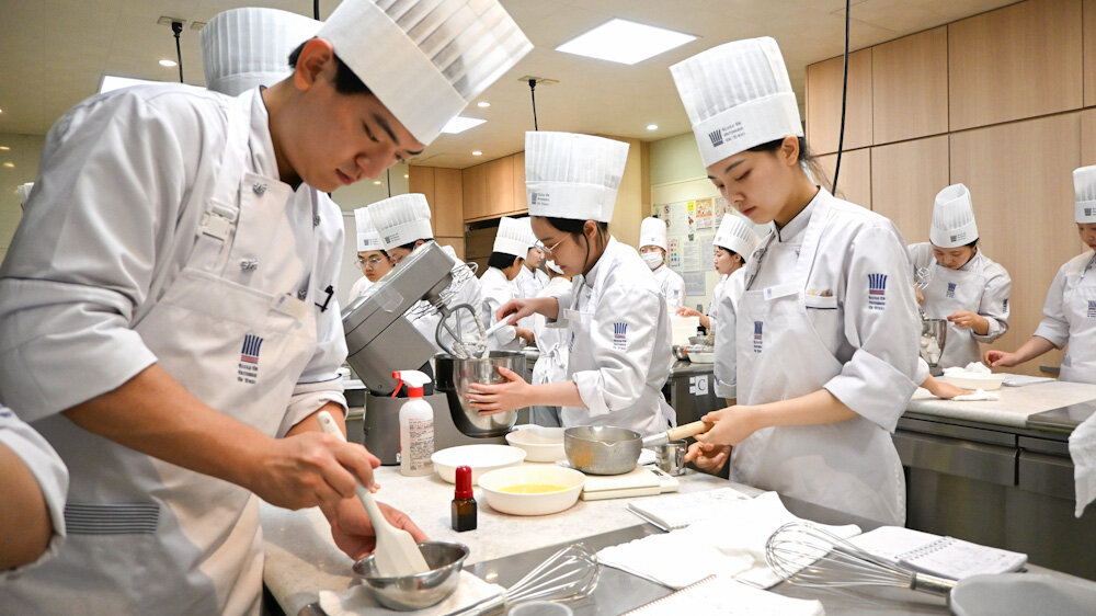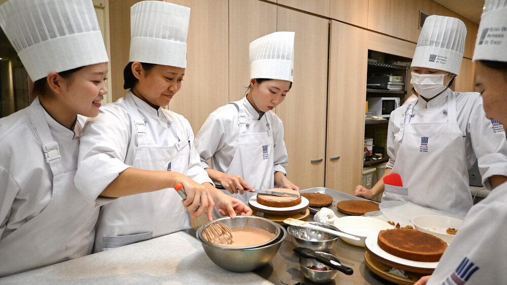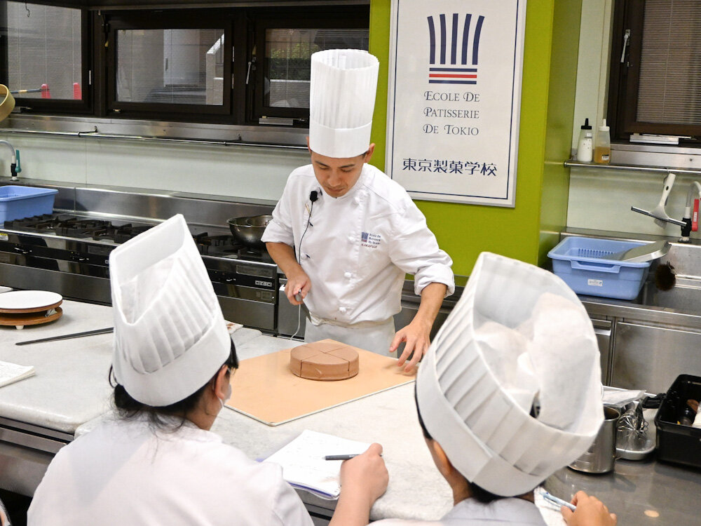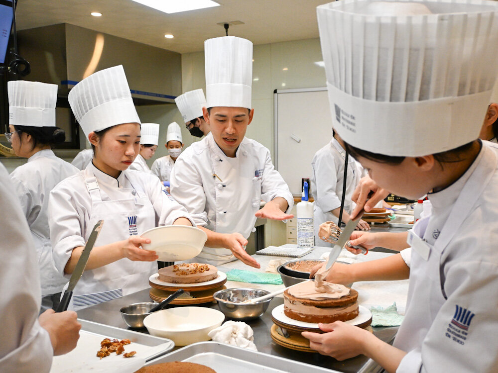 昼間部 洋菓子本科1年生では、製品のバリエーションを学びながら反復練習ができるように、先生が実習を考えて組んでくれています。