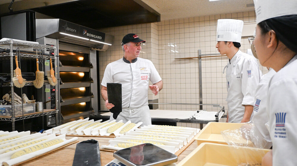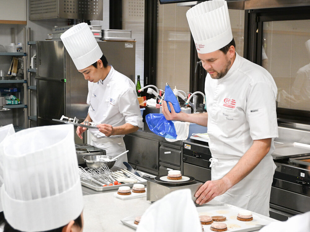 本校では本場フランスの菓子・パンを感じてもらうために、毎年この時期にフランスから客員教師の先生方をお招きして授業を展開しています。