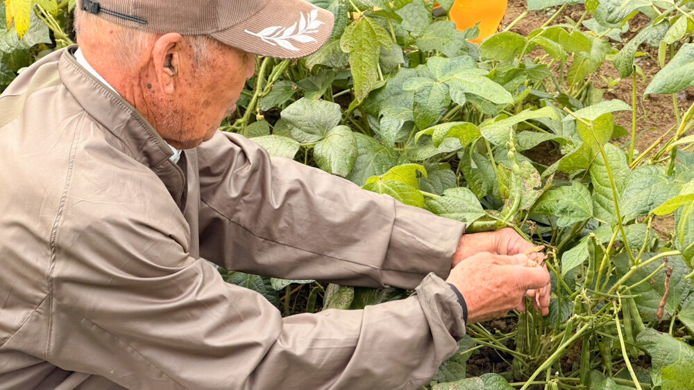 広大な圃場で屈んだ姿勢のまま、熟した莢を選別しての摘んでいくのは、かなりの重労働なのですが、いつもの元気と明るさで何とか乗り切ることができたようです。