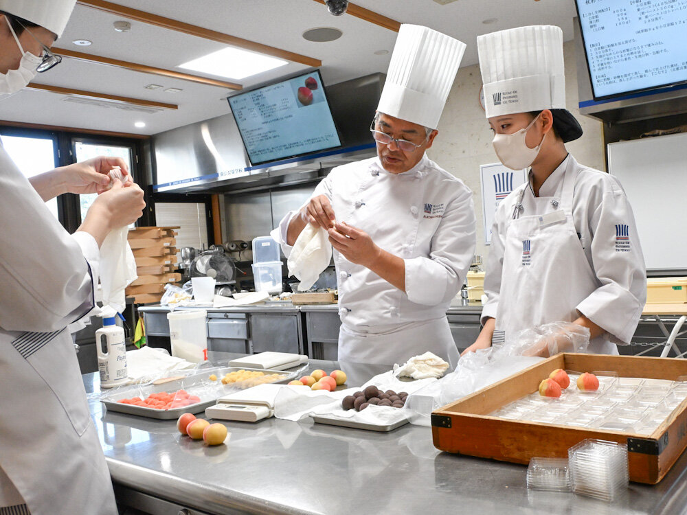 夏の頃よりも少しだけ工程が増えて、難易度も上げたデザインの上生菓子になってきています。それだけ学生たちもレベルアップしてきているということなんです。