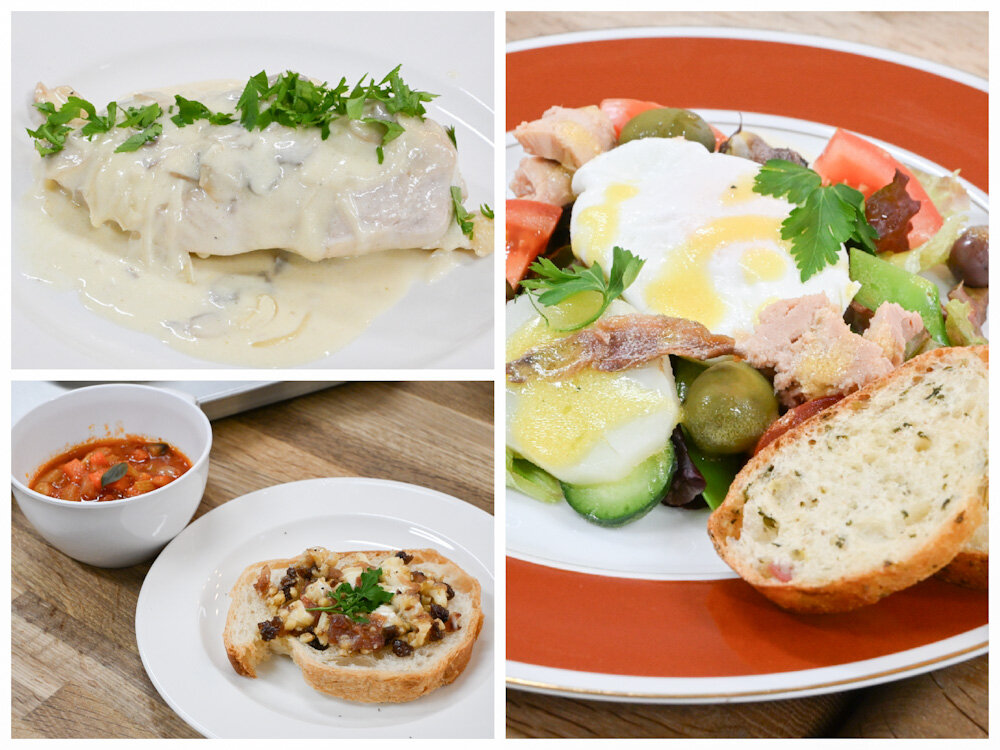 パン・ド・カンパーニュに合わせたクロスティーニ、バゲットに合わせたフリカッセ、ハーブのパンに合わせたサラダ、ミネストローネ、ポトフといったスープやパスタに至るまで、カフェスタイルのお店や新たなテイクアウトのラインナップとしても活用できそうなメニューをたくさんご用意いただきました。