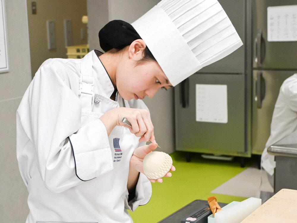 和菓子職人にとって資格取得は必須ではないものの、この資格は自分の技量を証明するもの。卒業後にはぜひ積極的にチャレンジしてもらいたいところです。菓子製造技能士・パン製造技能士は数ある技能士の資格の中でも難易度の高い難しい資格なんです。そのため、通常の授業の中で試験課題と同レベルの内容にも取り組んでいます。