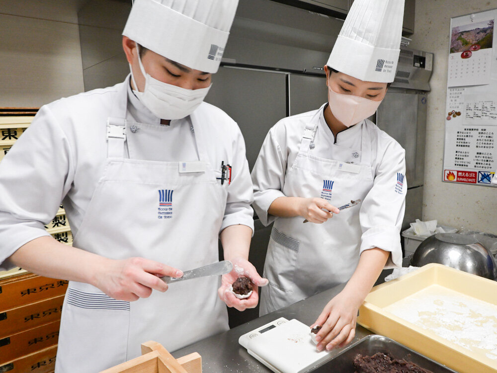 昨日の昼間部 和菓子本科1年生が取り組んでいたのは、和菓子の代表格でもある「お饅頭」です。現存する和菓子の中でも、もっとも歴史のあるお菓子がこのお饅頭かもしれませんね。それだけ長きに渡って多くの方々に親しまれてきただけあって、その種類はとっても豊富。地方に行けばその土地ならではのお饅頭があったりしますよね。
