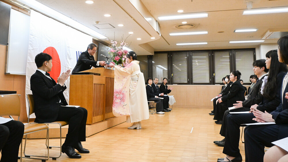 先日の昼間部に続き、今夜は夜間部の卒業式を行ないました。卒業生のみなさん、ご卒業おめでとうございます。