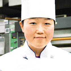 宣眞姫 韓国の洋菓子店や都内有名店にて勤務後、本校に就任したOG。外国人留学生のカウンセリングにも携わる。主な受賞歴に、ジャパン・ケーキショー東京・第1部デコレーションケーキ部門1類マジパン仕上げ銅賞など。洋菓子製造技能士1級、職業訓練指導員。 |
