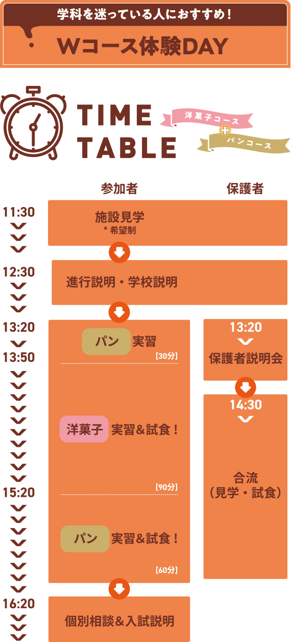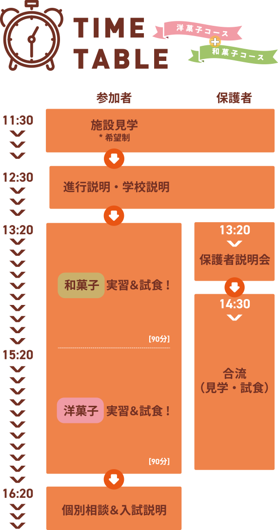 在校生の方が優しく教えてくれた。みんな仲が良く、いい雰囲気で実習ができました。2種類もお菓子をつくれて、体験のボリュームもすごかった!